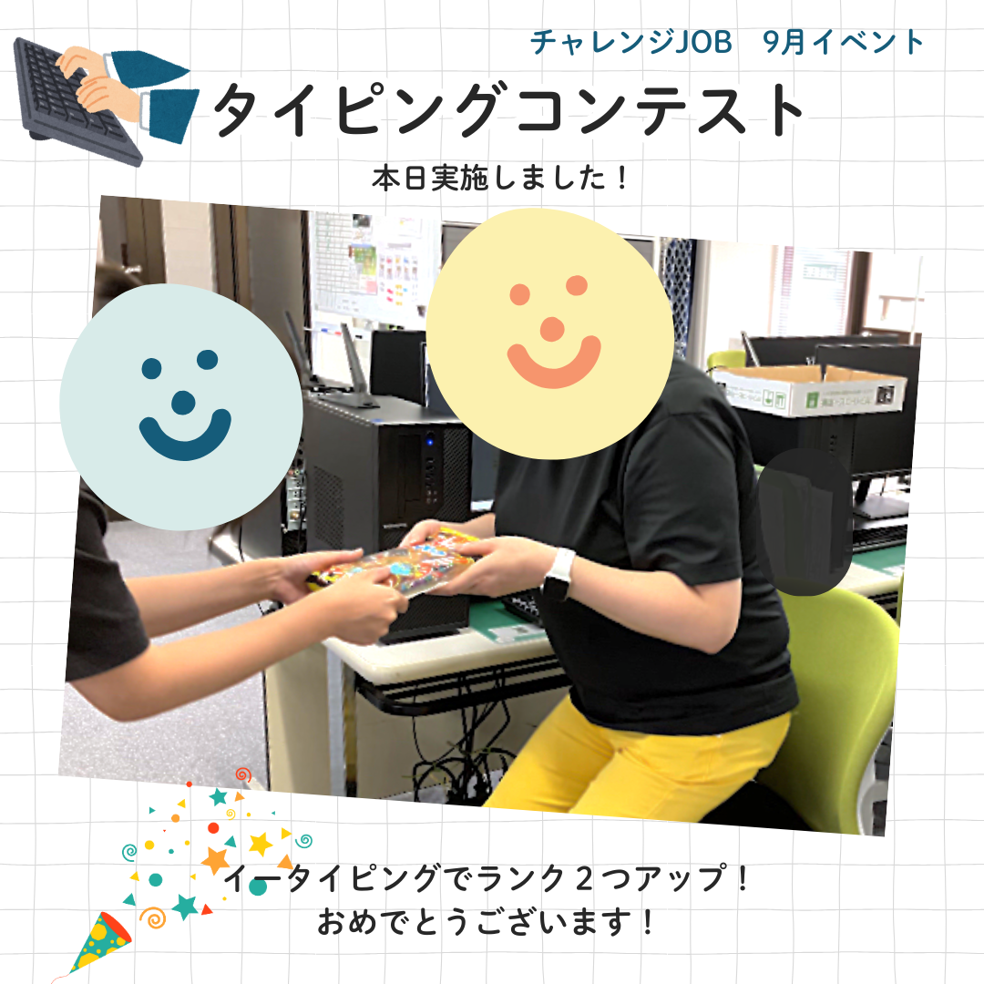 ちなみにこのメンバーさんが休憩時間中もずっとタイピングの練習をされていたのを職員は陰ながら見守っていました。練習の成果が出て、ご本人以上に職員が喜んでいました。